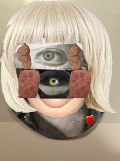 J'ai ici essayé de faire quelque chose de pas très beau a voir, en plaçant des bouton d'acné, au niveau du cou, des veines, au niveau des tempes, un double menton, en oeil dans la bouche et un coeur. J'ai ajouté une chevelure longue te blonde.