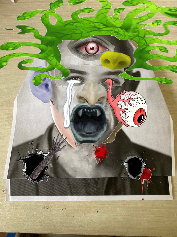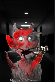 Pour la deuxième de mon projet sur photofiltre j'ai d'abord pris l'outil aéorographe pour faire des éclaboussures rouges puis je les ai fondu avec l'outil flou, puis j'ai agrandis son oeil de gauche et éclaircies ses yeux, j'ai formée des cornes, rajoutée un bras et une tentacule. J'ai colorié le fond de sa bouche en noir et fais des vagues avec l'outil doigt puis j'ai chercher une image sur internet d'un virus pour pouvoir sélectionner les glycoproteins du virus qui donne l'effet de boutons venimeux, jusqu'à réduire l'opacité que je voulais obtenir dont j'ai ensuite coller sur le visage, pour finir j'ai pris l'outil doigt pour flouter son torse.