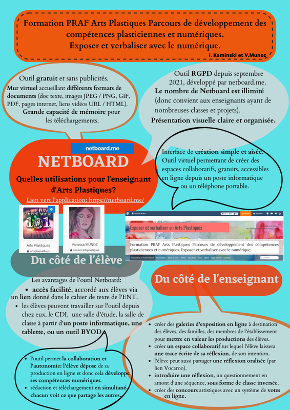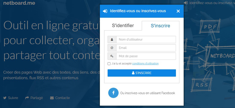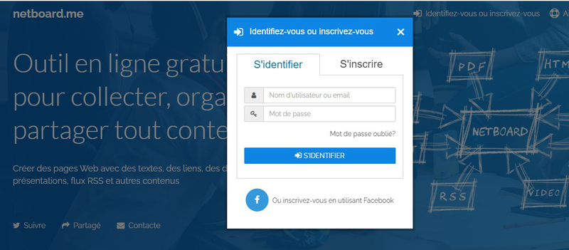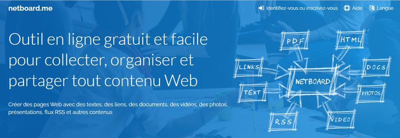 Netboard est un mur virtuel permettant de créer un espace collaboratif, gratuit, accessible en ligne depuis un poste informatique, une tablette ou un téléphone portable.