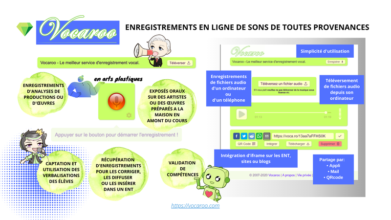 Il est possible d'intégrer des capsules audio au format MP3, en utilisant un lien de téléchargement. Il est possible d'utiliser deux outils RGPD et gratuits: