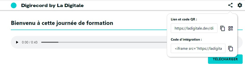 Une fois l'audio enregistré sur Digirecord, il se partage par un lien, téléchargeable sur un Netboard.