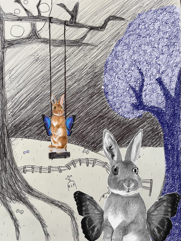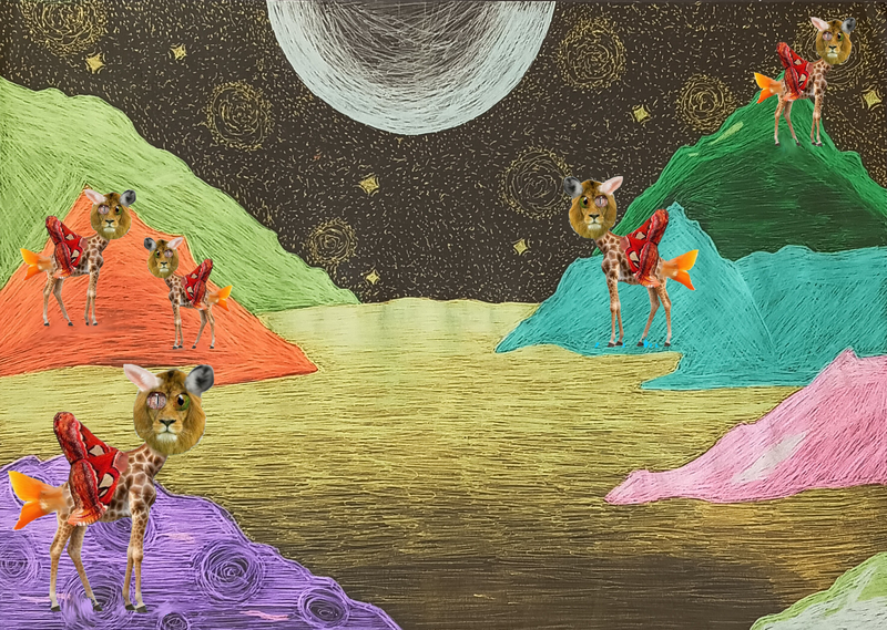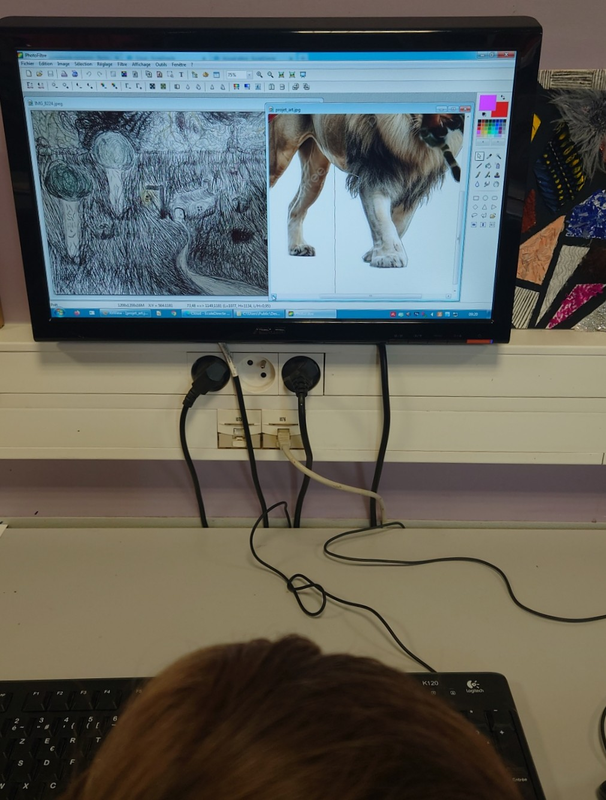 Le dessin initial devient support de création. Il est repensé à travers le numérique, où la composition visuelle ne passe plus par le geste dessiné mais par le montage, la sélection, l’hybridation d’images. On ne dessine plus, on manipule, on recompose — et ce geste est tout aussi plastique. Le numérique devient ici un médium créatif à part entière, questionnant les limites entre représentation et transformation.