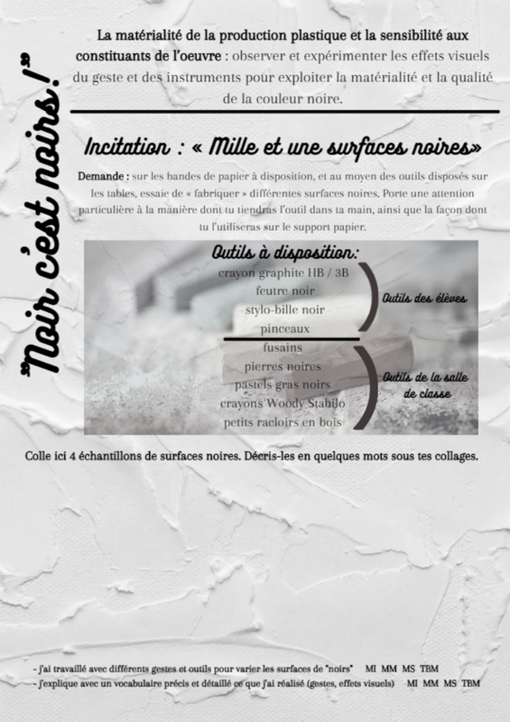 Il leur est demandé de "fabriquer" différentes surfaces noires, en variant les outils et les médiums et en modulant leur geste.